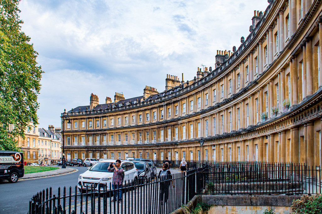 - Королевский полумесяц (The Royal Crescent). Улица из 30 домов, выстроенных в форме полумесяца. Комплекс окружен огромным парком, летом на газоне организуют пикники.